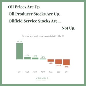 Since February 27, US oil prices are up nearly 50%. ConocoPhillips, Chevron, and ExxonMobil stock are all up. OFS? Not so much.