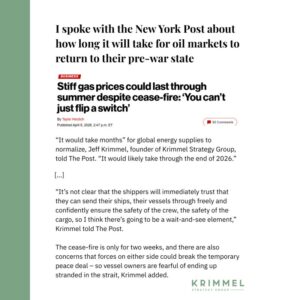 I told the New York Post that I think it’ll take until near the end of 2026 for oil markets to normalize.